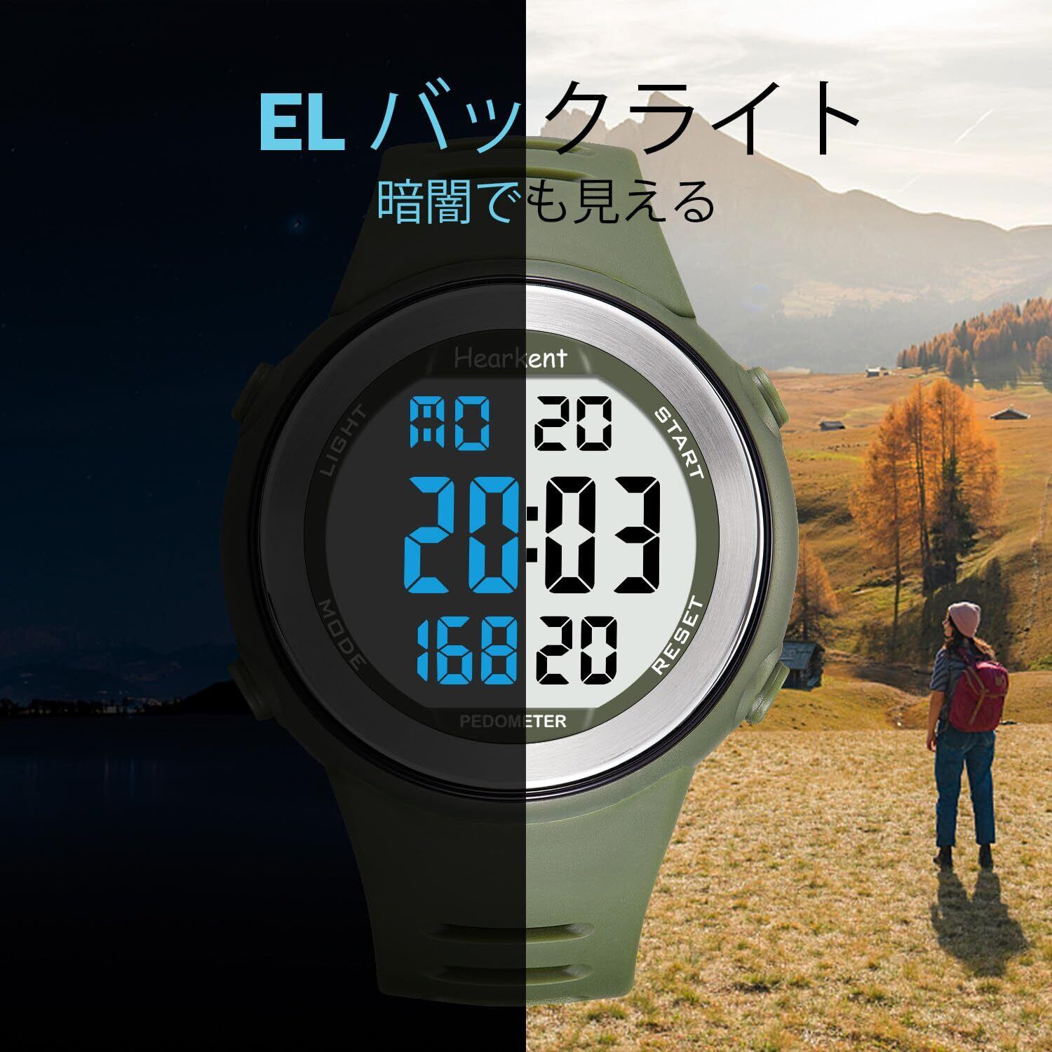 【明るいバックライト】大きな文字盤と数字、LEDバックライト付き。夜間の使用にも便利で読みやすいです。ハイキング、キャンプ、水泳、その他のアウトドアアクティビティに最適です。