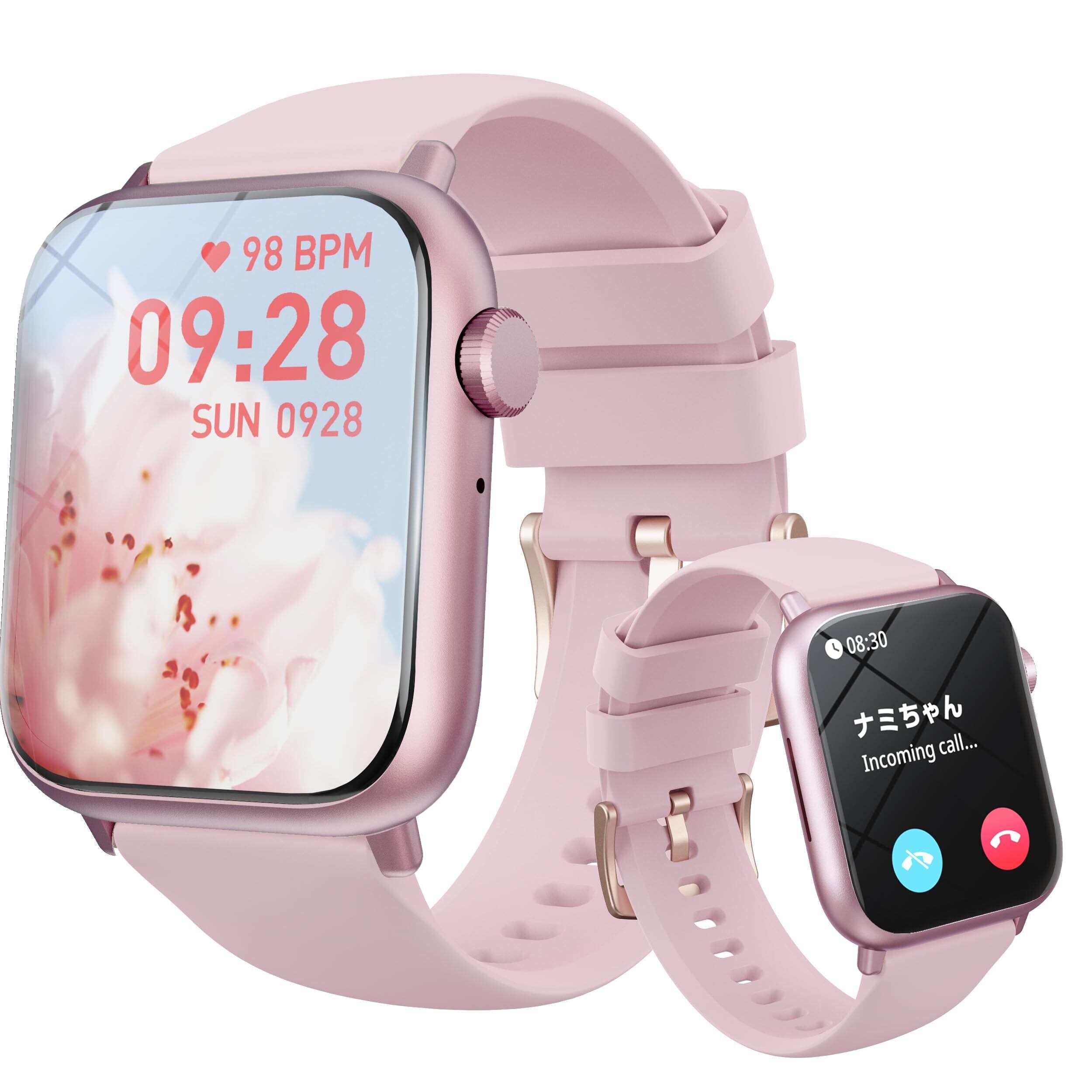 スマートウォッチ レディース【2024新登場 1.85インチ大画面】通話機能付き LINE 着信通知 Smart Watch iPhone アンドロイド対応 活動量計 歩数計 睡眠トラッカ カロリー記録 女性生理周期管理 ダイエット 腕時計 100多種類な運動モード スポーツウォッチ 200種文字盤 日本語対応 超軽量 ピンク 彼女/母/姉妹/妻にプレゼント