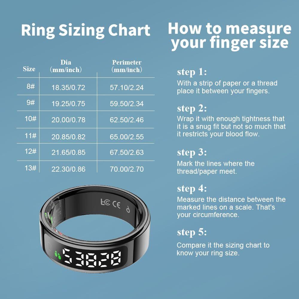 スマートリング | 睡眠トラッキング | フィットネスリング | スマートディスプレイ | ワイヤレス充電 | 5~7日間のバッテリー寿命 | 5気圧防水 | Android 5.1 & iOS 8.0対応 | ユニセックス (ブラック, 9)