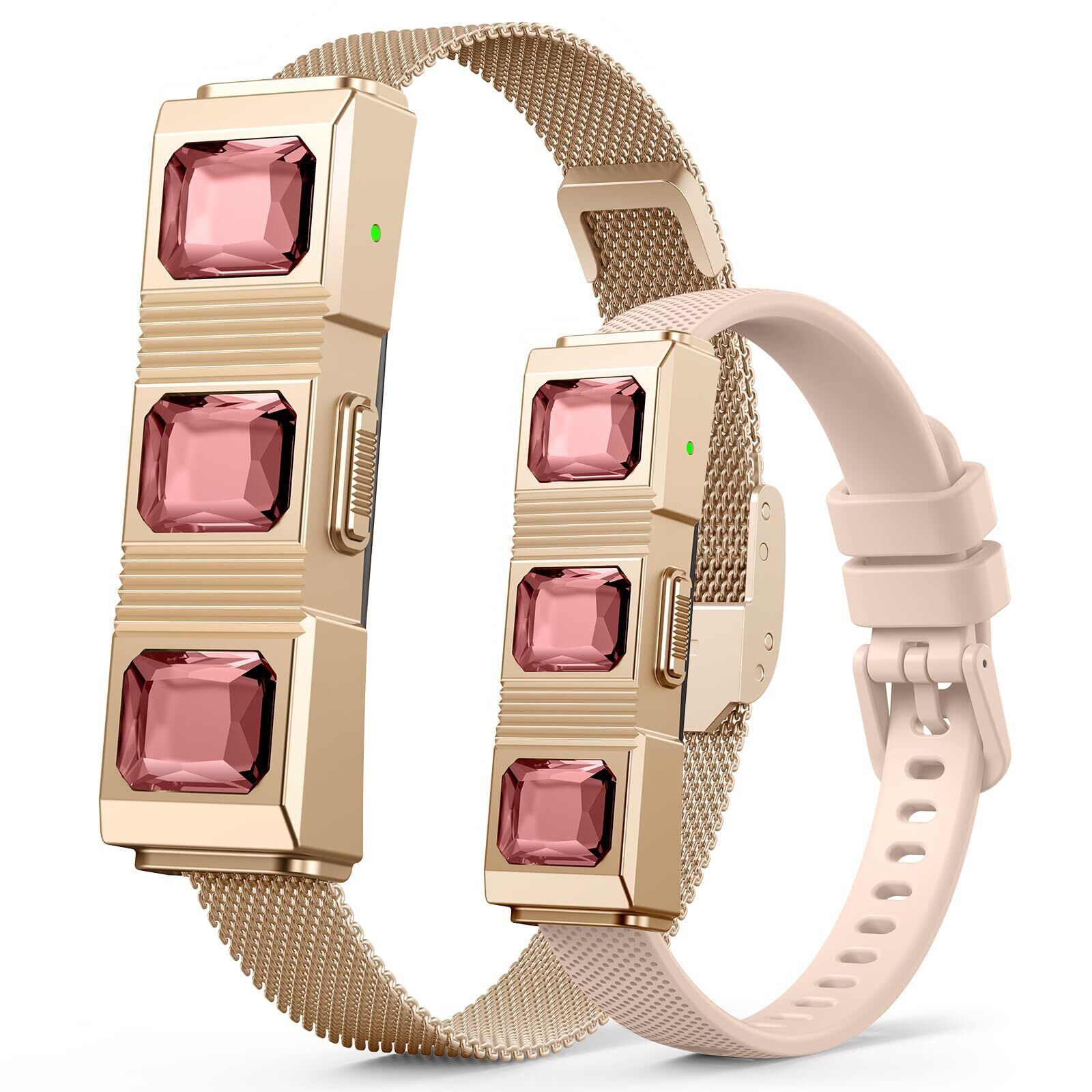 レディーススマートバンド、ウェアラブル活動・フィットネストラッカー。170種類以上のスポーツモードを搭載。24時間睡眠トラッキング、着信通知、歩数計、リモート撮影、スマホ検索機能を備え、長時間バッテリー駆動。超薄型軽量設計で快適な装着感。男女兼用。iPhone/Androidシステム対応。2本のリストバンド付属。無料アプリ(ゴールドカラー)