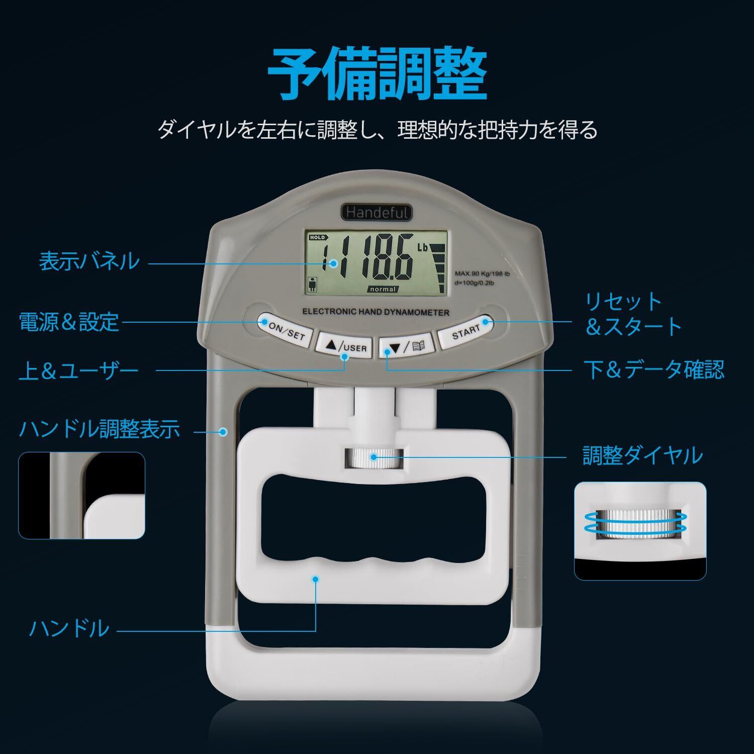Handeful デジタル握力計 セット 握力トレーナー 自動計数機能 高精度 正規品 グリップ幅調整可能 0-90kg 握力測定 記録更新機能付き 19人登録 握力トレーニング 握力強化 運動用 運動グッズ スポーツ グッズ 男女兼用