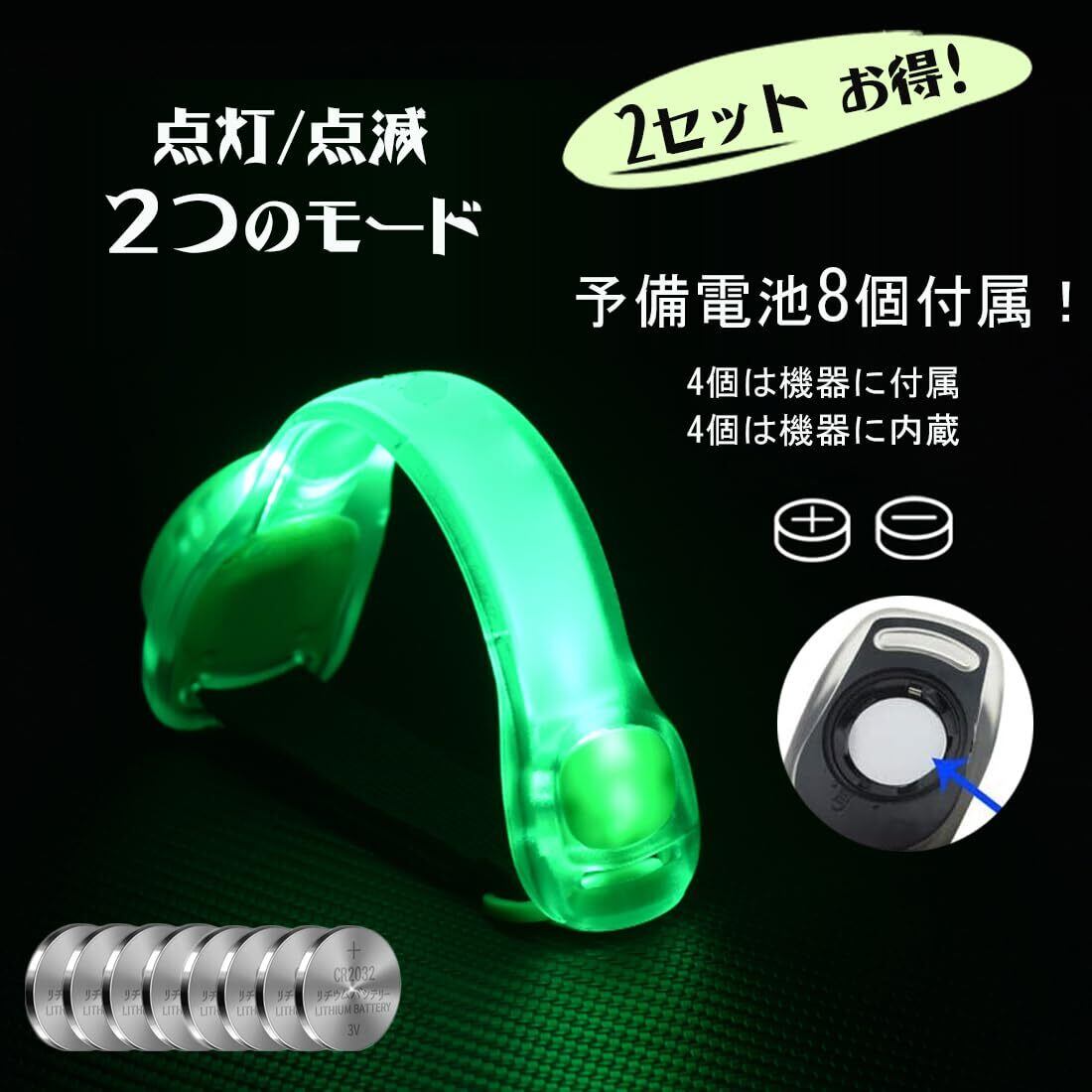REAK LEDアームバンド ランニング ライト 夜間 散歩 ジョギング ウォーキング 自転車 反射バンド 裾バンド 防水 反射板 点滅 腕 手首 光る腕輪 推し活 2セット(green+green)