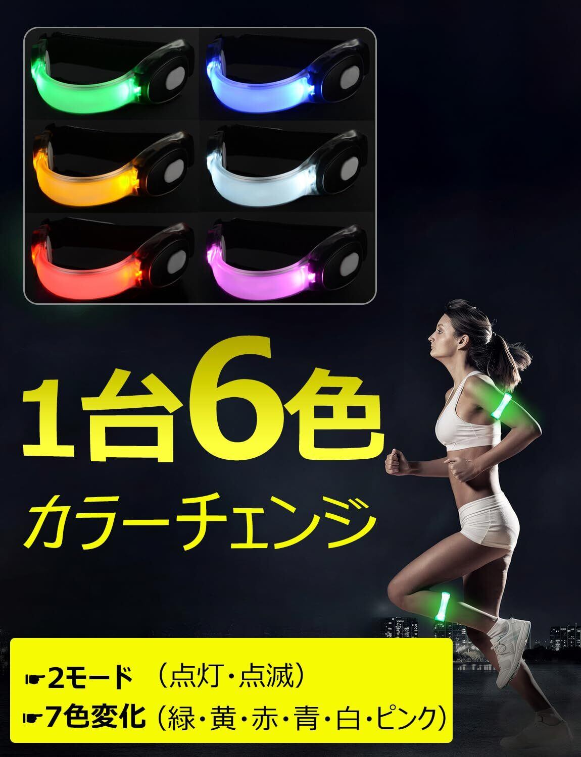夜間 ランニング ライト 1台6色 LED 光る アームバンド 裾バンド 防水 ジョギング ウォーキング 自転車 反射板 腕 反射タスキ 散歩 リフレクター 夜 マラソン 蛍光 反射バンド 6カラーチェンジ