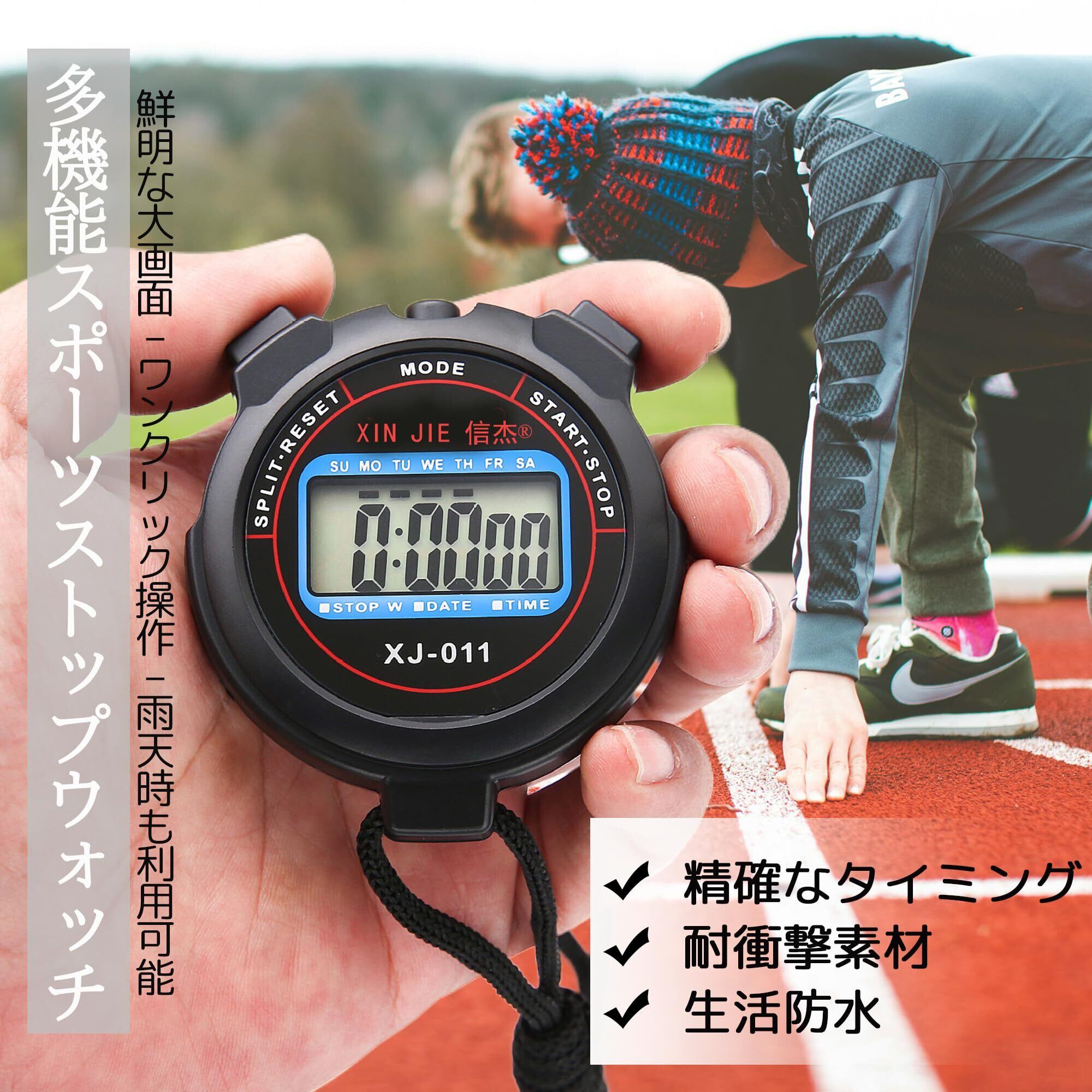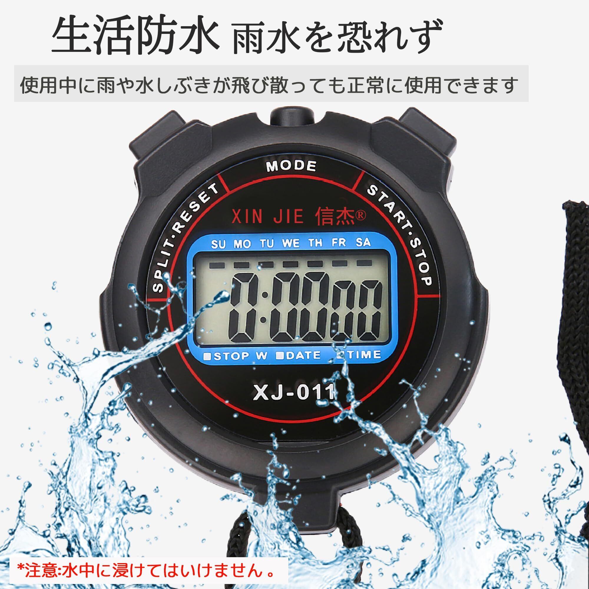 ストップウォッチ スポーツタイマー 防水 高精度 ストップ ウォッチ カウントダウンタイマーエクササイズフィットネス 大画面分割タイマー 電池交換可 バッテリーとストラップ付き(ブラック)(2)