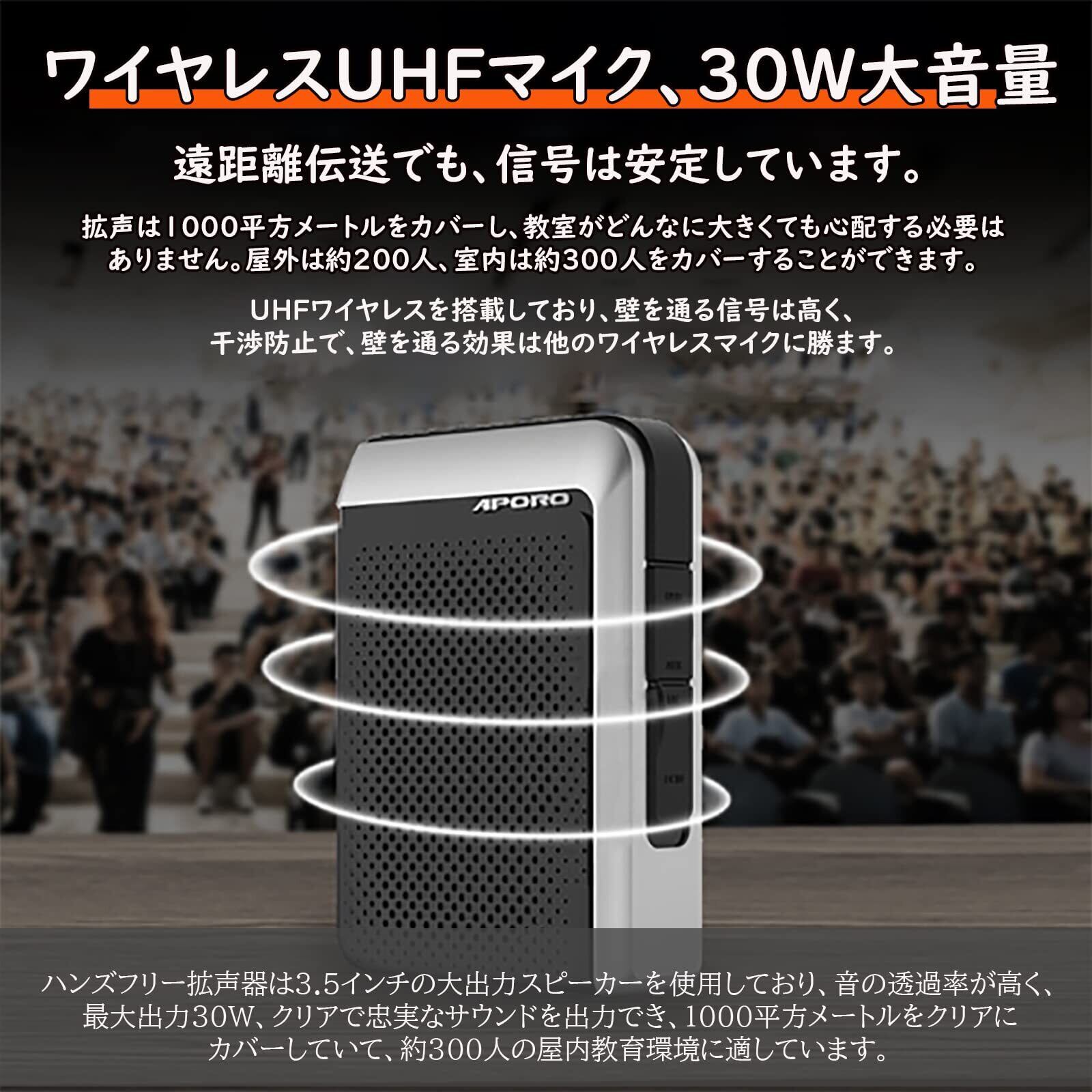 拡声器 メガホン 30w 大音量 無線拡声器 拡声器 ワイヤレス UHFマイク型 ポータブル拡声器 ワイヤレスマイク1本 充電式 スピーカーセット bluetooth5.0対応 USB microSD対応 拡声器ハンズフリー 付スピーカー 音楽/録音再生4000mAh 20時間再生 スピーカー TFカード/FM対応/3.5mm AUX対応 イベント 講演 店頭販売 街頭演説 誘導案内