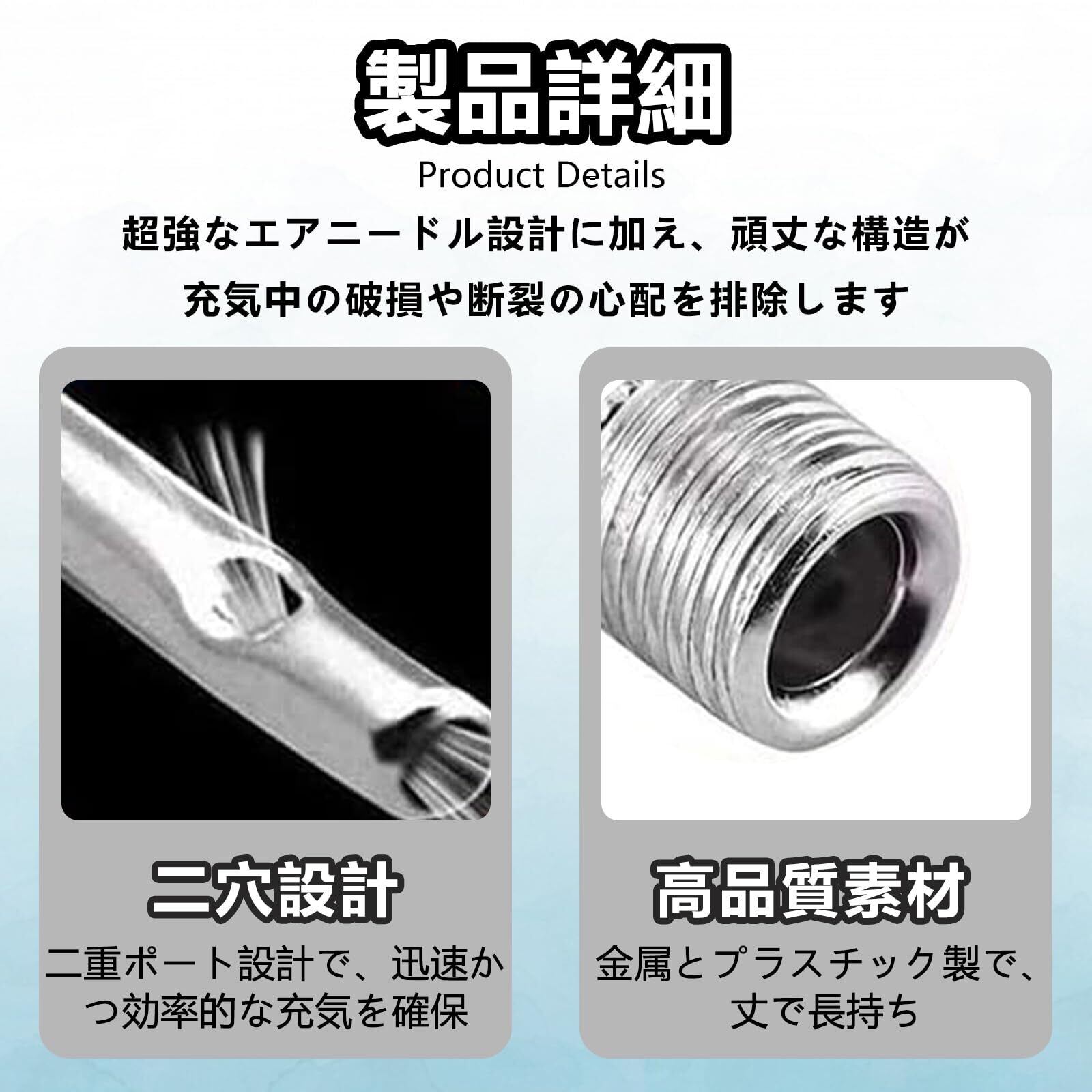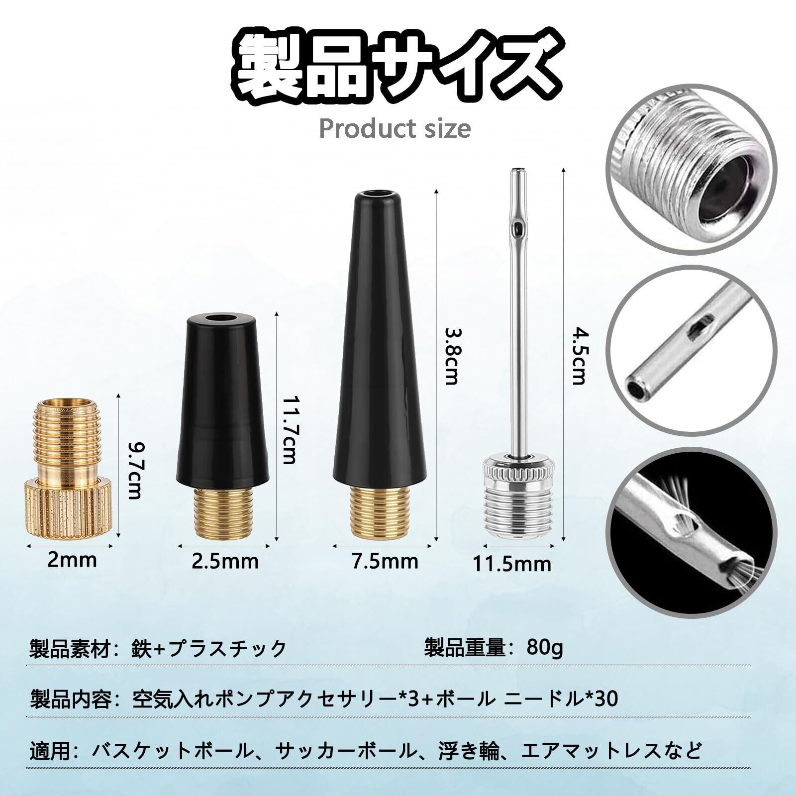【商品仕様】製品名:ステンレス鋼製 空気針、サイズ:7.5mm*38mm、重量:約80g、パッケージ内容:ボールニードル*30 + 空気入れポンプアクセサリー*3、何度も使用するニーズに対応しています