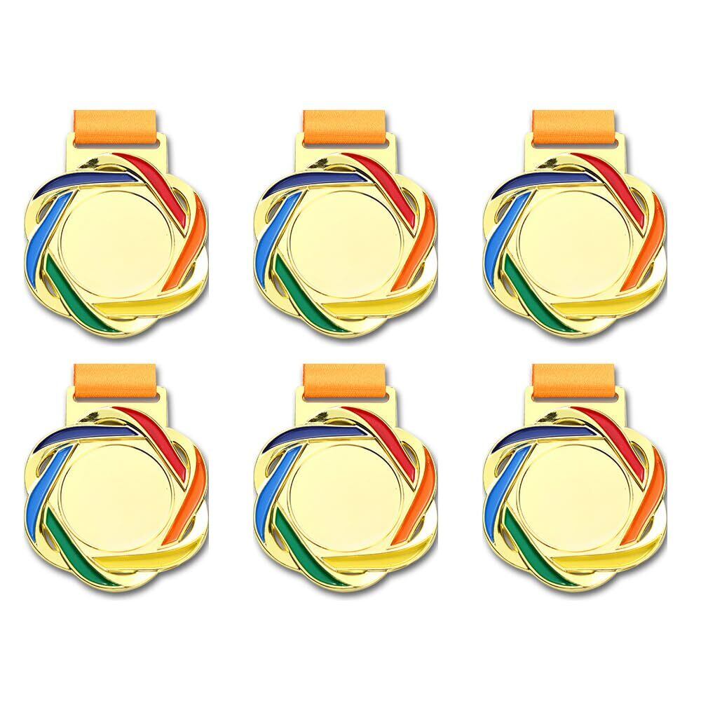 6枚 金属製 メダル 金メダル ストラップ付きメダル 優勝記念 表彰用 運動会や社内イベント 学校行事 ご褒美に最適 金属製