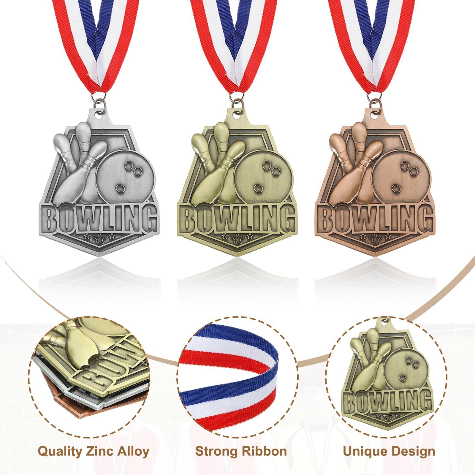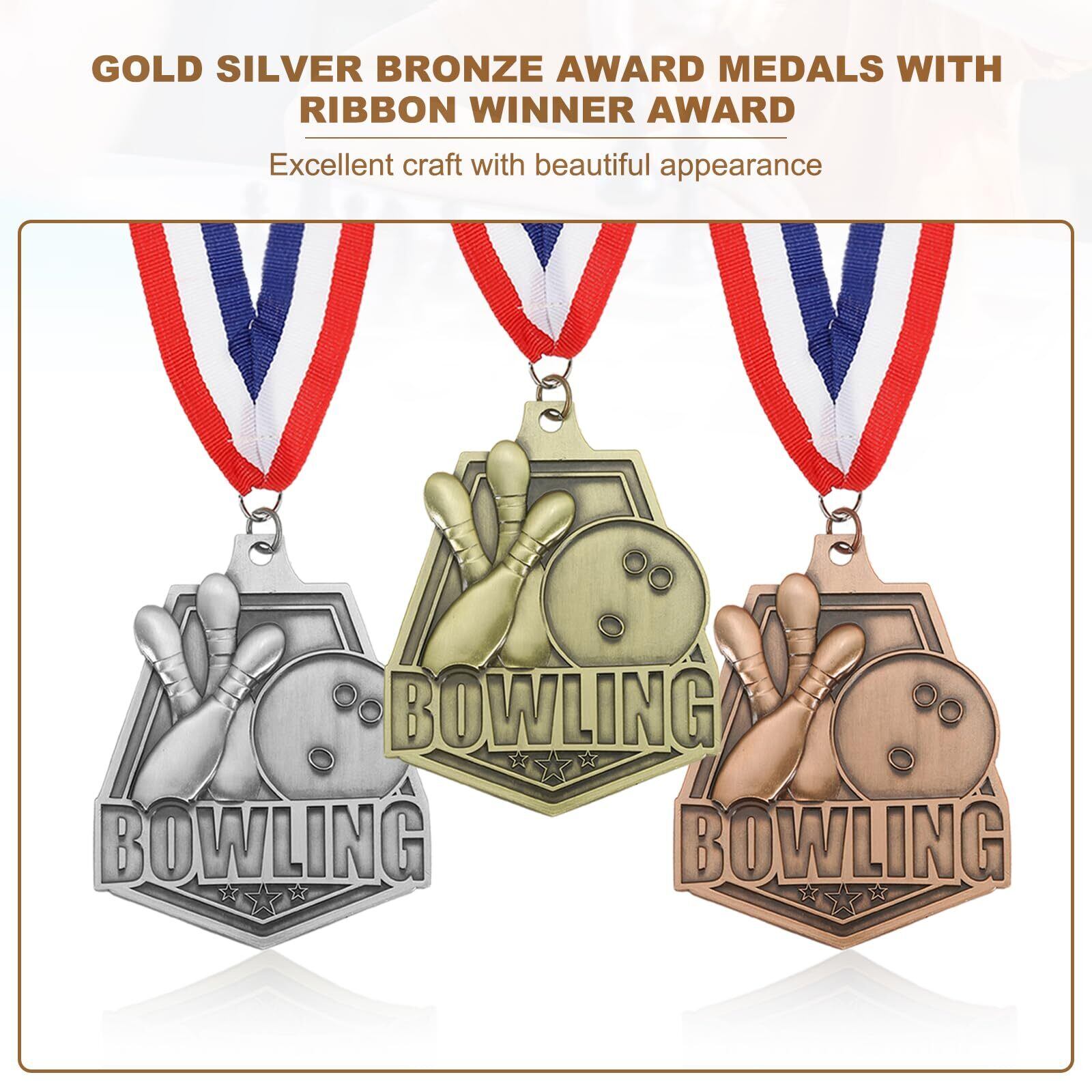 PATIKIL ボウリングゲームエンボス加工賞メダル レッド・白・青 リボン付き 優勝メダル 3個 金・銀・銅賞品 競技会 スポーツパーティー用 金/銀/銅