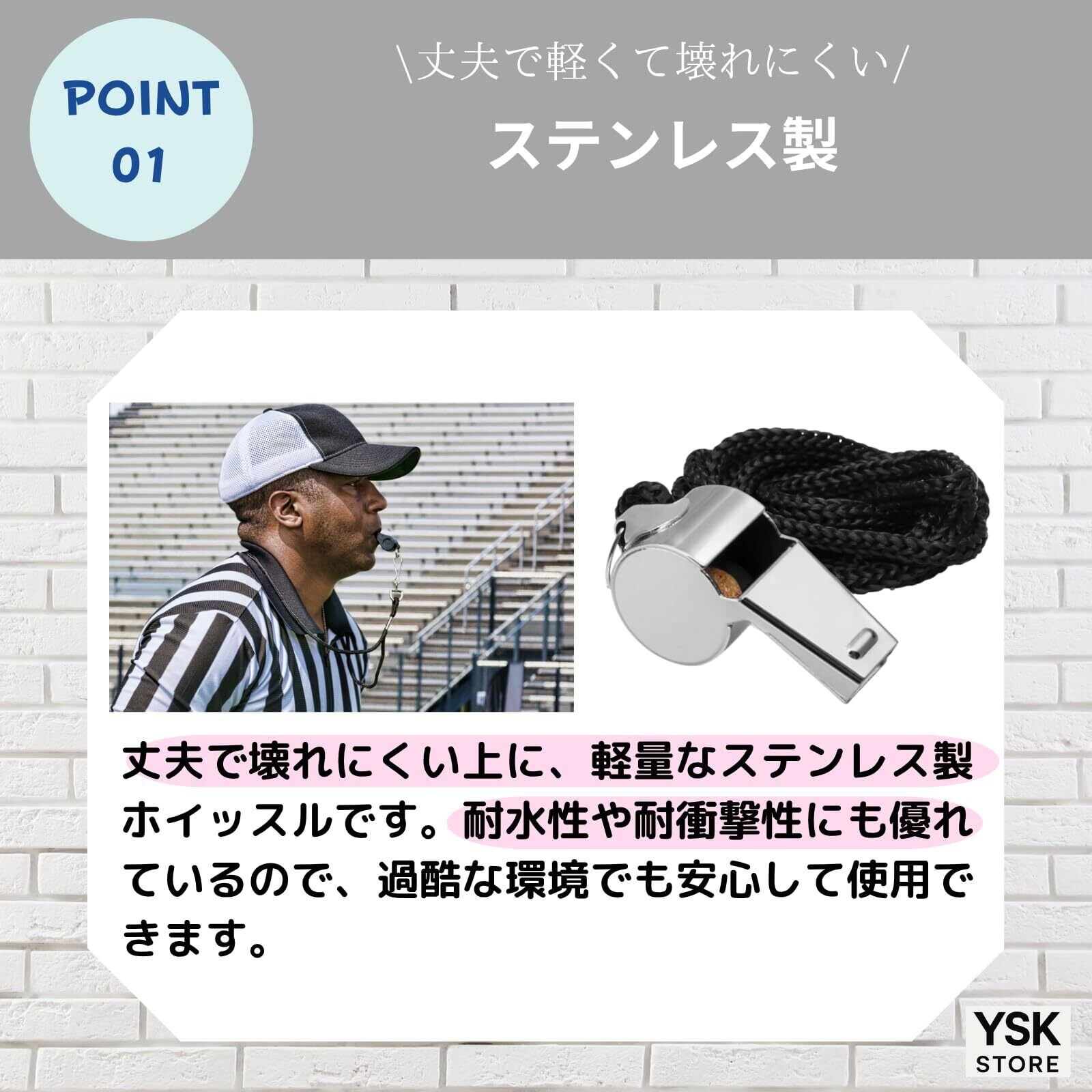【丈夫で軽くて壊れにくいステンレス製】丈夫で壊れにくい上に、軽量なステンレス製ホイッスルです。耐水性や耐衝撃性にも優れているので、過酷な環境でも安心して使用できます。長時間の使用が可能で、壊れにくいので、審判や先生、あらゆるスポーツでの活躍間違いなしです!