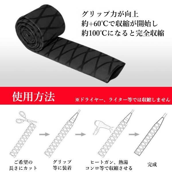 ・グリップの交換や滑り止めに最適。 ・テニス、バドミントン、ビリヤード、釣り竿など様々なグリップに使用可能。 ・グリップ力が向上。 ・約+60℃で収縮が開始し、約100℃になると完全収縮。 【商品仕様】 カラー ブラック 素材 PE チューブ直径 35mm 長さ 約1m