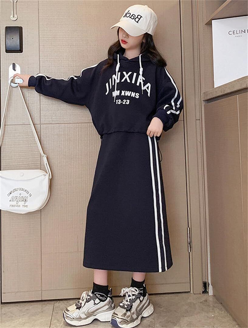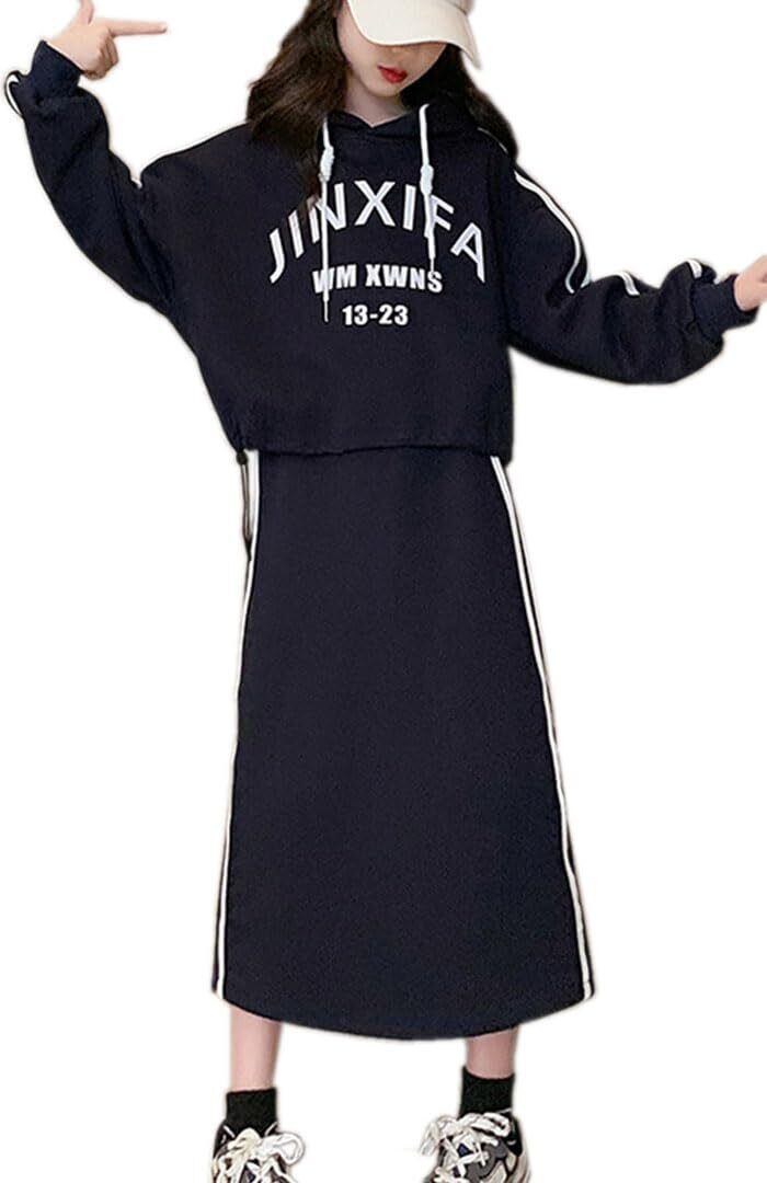 [BLZXIAN] 子供服 2点セット セットアップ 上下セット ショート丈パーカー スカート パーカー ワンピース フード付き スリットスカート ジャージ 長袖 普段着 女の子 ガールズ 春 秋 おしゃれ ファッション