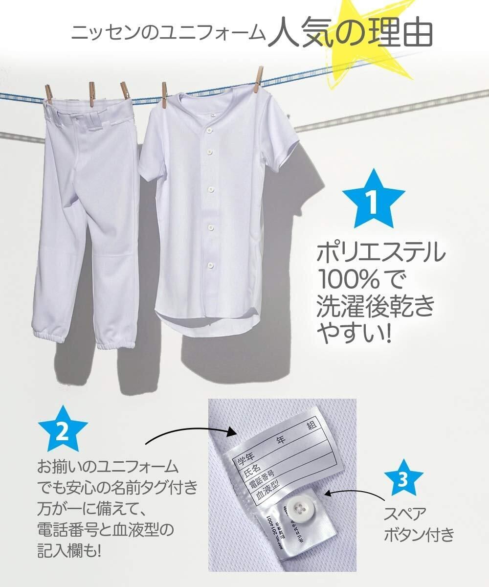 [ニッセン] ユニフォームシャツ 野球パンツ2枚組(子供服 ジュニア服)