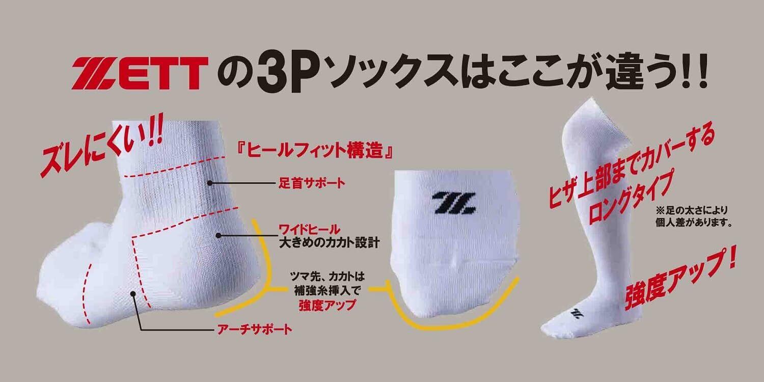 ZETT(ゼット) 少年野球 ソックス(ストッキング) アンダーソックス 3足組 1セット ホワイト(1100) 19~21cm BK03S ジュニア 靴下(くつした)