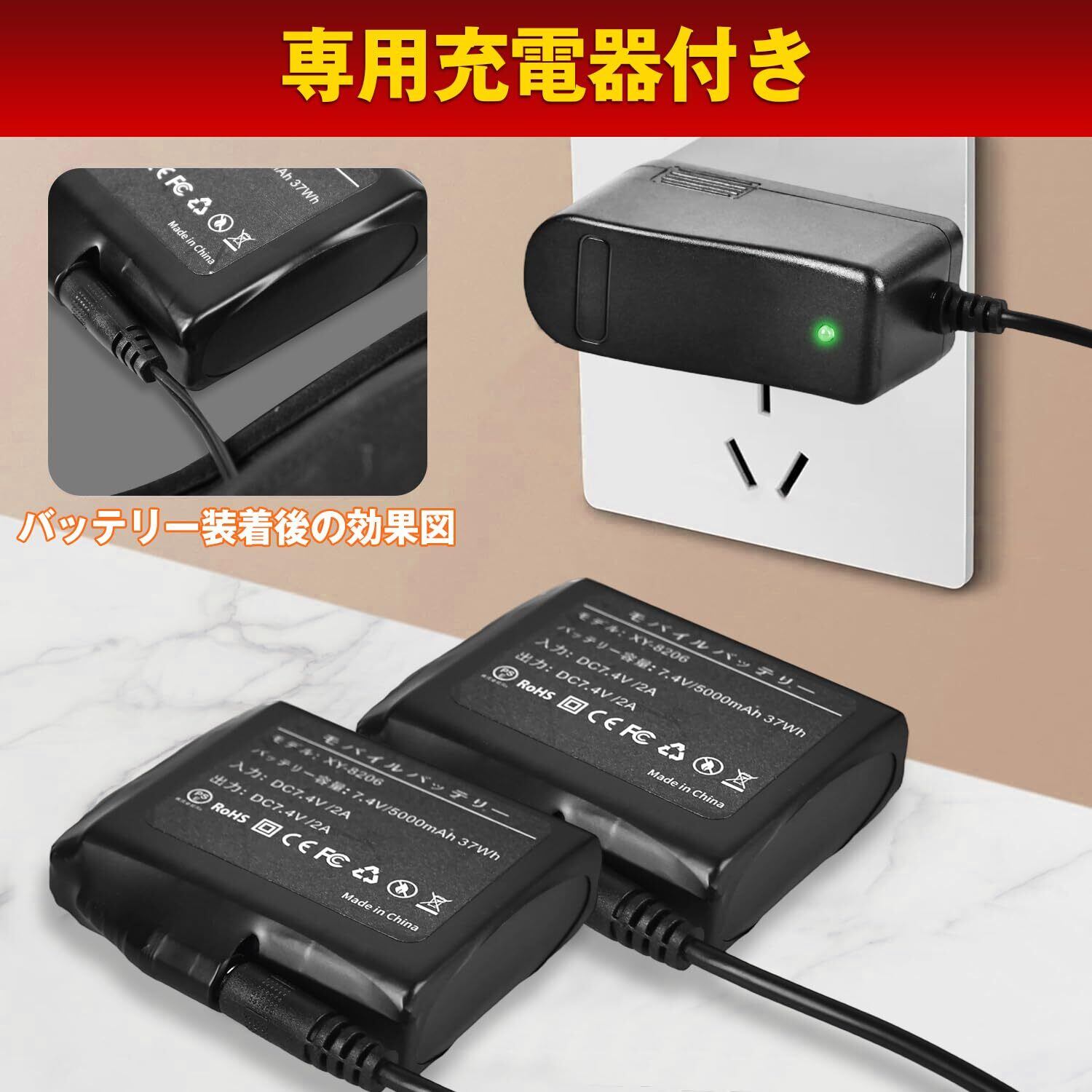 電熱グローブ用 バッテリー 2個 7.4V /5000mAh DC出力 専用充電器付き 大容量 バイク グローブ 幅広い交換性 電熱商品対応 PSE認証取得済み