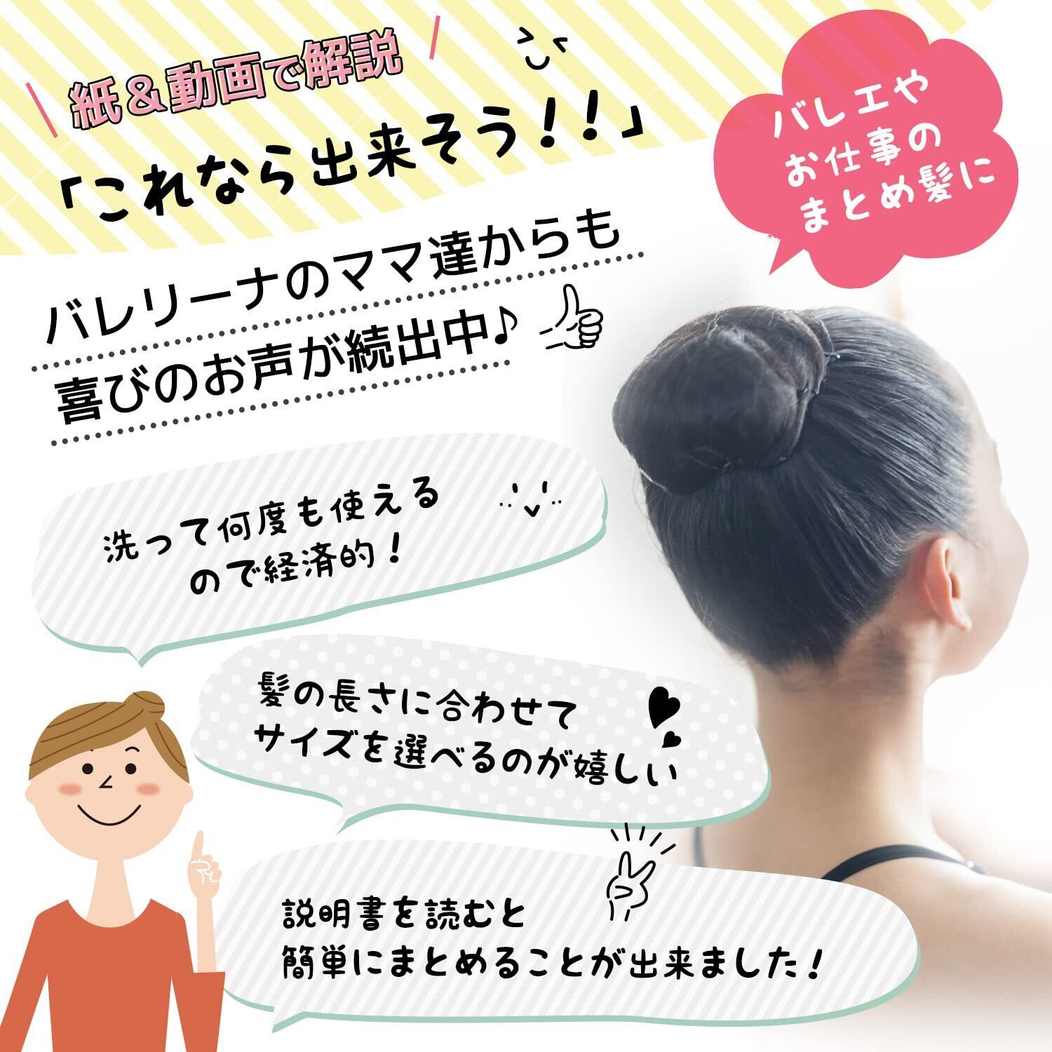 バレエや新体操、和装時のまとめ髪など、いろいろなシーンでお使いいただけます。Merrututuのお団子ネットで時短!簡単に!