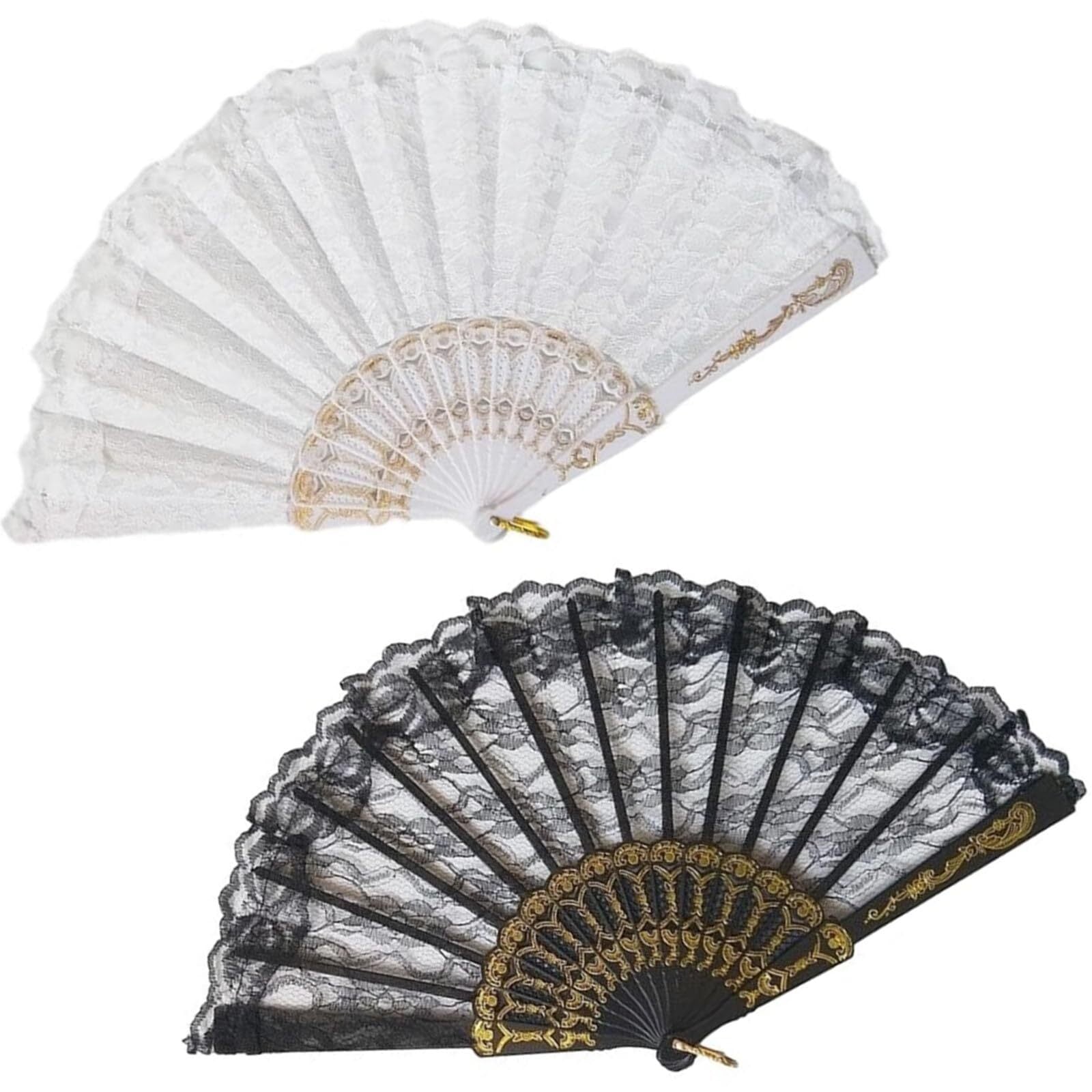 レース扇子 2個セット フラワーファン 折りたたみ式 ハンディファン 装飾の扇子 工芸品 壁掛け装飾 贈り物 写真小道具 ダンスパフォーマンス用 練習用 バレエ用品