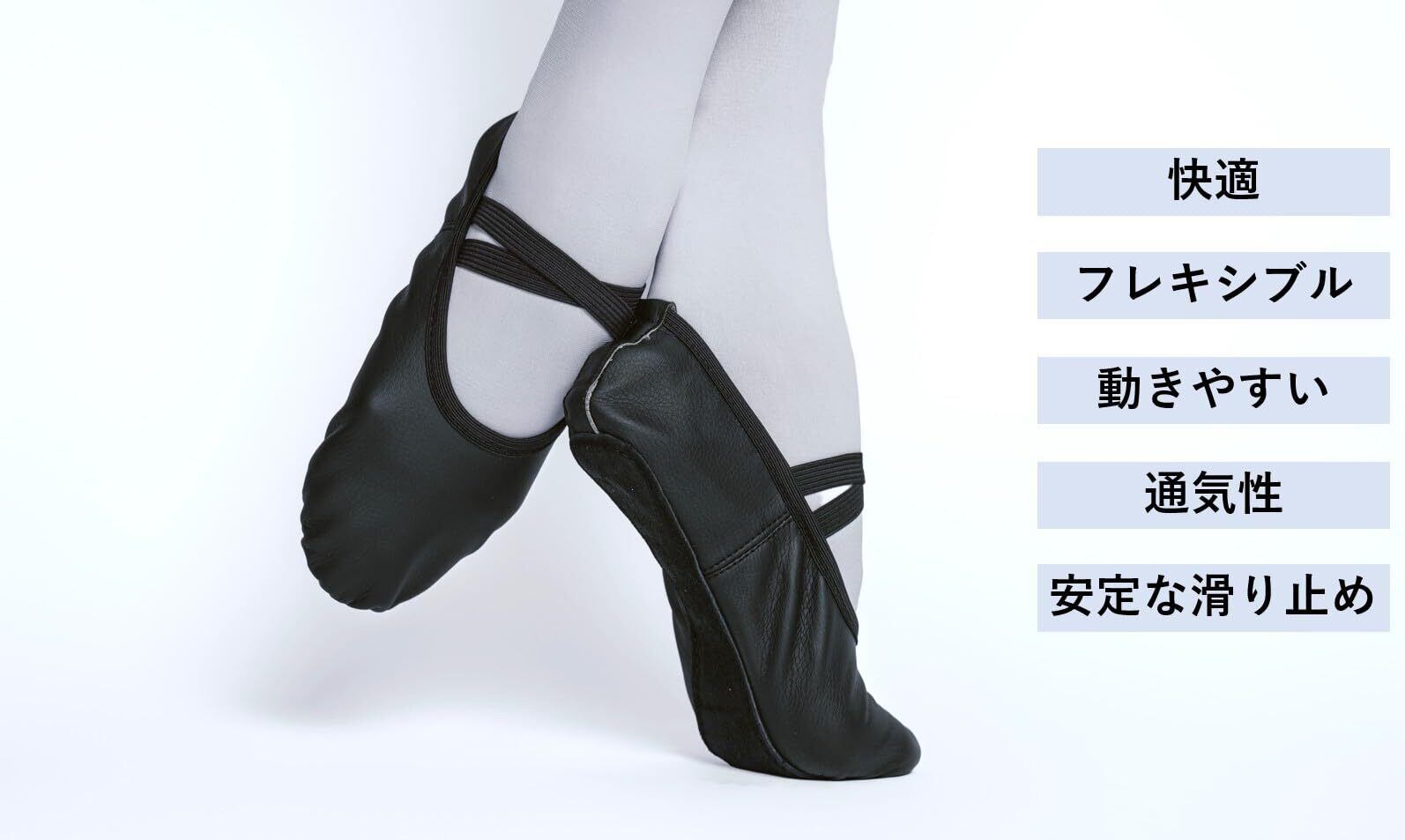 【材質構成】:表面(PU合成革)、裏(綿の布)、靴底:牛革 【特徴】:・品質管理を徹底し高品質なバレエシューズをご提供・ PU材質で通気性がGood!・引きゴムは足にフィット&ゴム紐は足甲が痛くならない・天然皮革アウトソールで安定な滑り止め機能がアップ 【タイプ】:安定感のあるフルソールタイプ 【用途】 :バレエ練習にぴったりです、ほかにピアノ、エレクトーン、チアリーディング、フラダンス、ベリーダンスなど用途は幅広いです。キッズや、初心者のジュニア、大人の方にオススメな足になじみやすいバレエシューズです。 【サイズ選び】:足sizeを測定し⇒足sizeに合わせてsizeをお選びください。 サイズ表をご確認の上、サイズをお選びください。 ※サイズ選びにお困りの方はメールにてお気楽にご連絡ください。