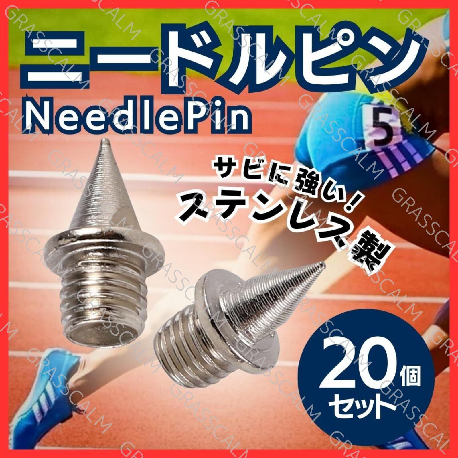 【取付ハンドル付き/散らばらないチャック付きパッケージ】 陸上スパイクピン 20個セット 陸上 ニードルピン スパイク ピン 軽量 スチール 耐久性 短距離 シューズ 部活 予備 大量 まとめ GRASSCALM