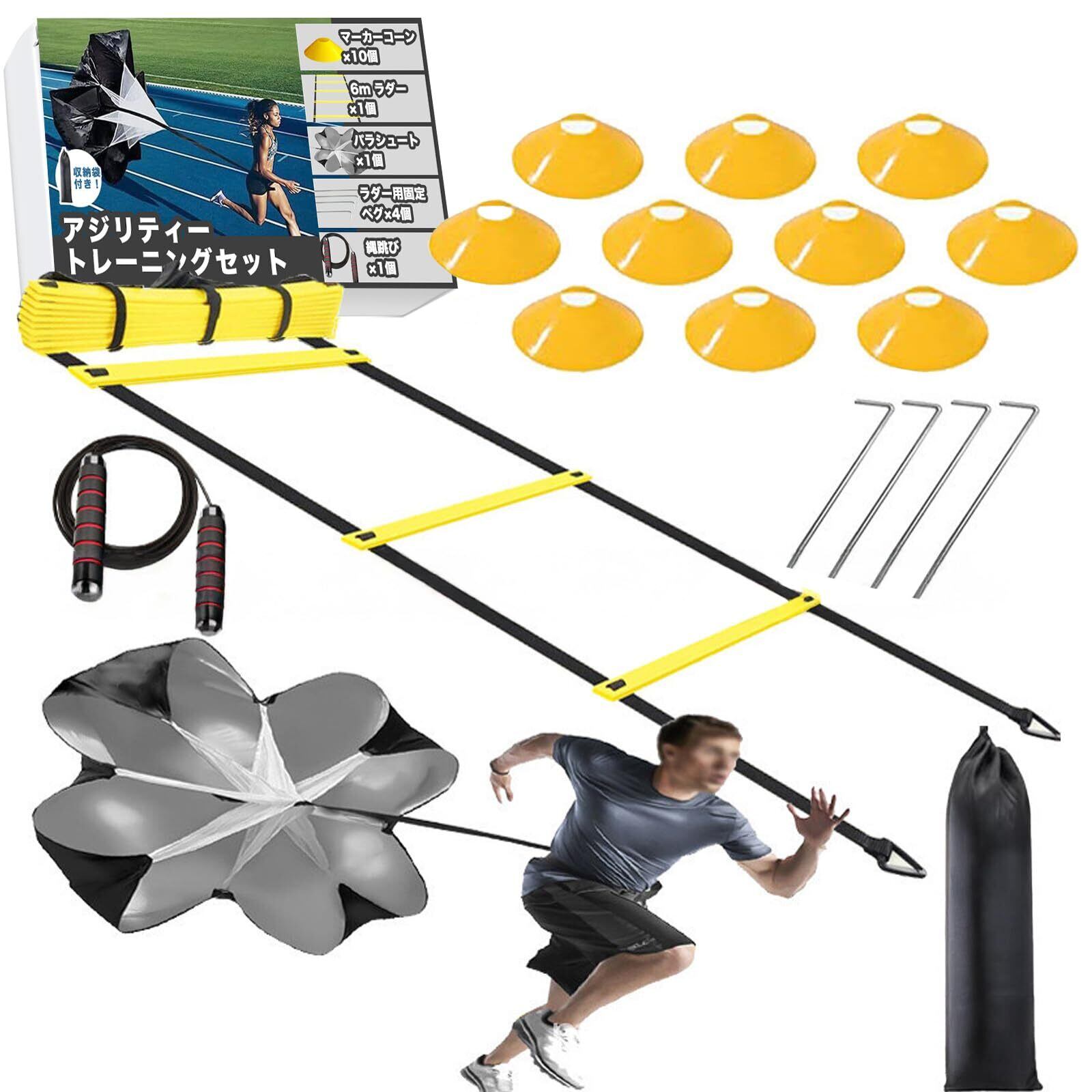 【実践派アスリートも納得の6点フルセット】 本製品はアジリティトレーニングに必要な6つのツール(ラダー・トレーニングパラシュート・マーカーコーン・縄跳び・収納バッグ・固定ピン)を1パッケージにまとめた、機能性重視のセットです。 トレーニングメニューに多様性が加わり、瞬発力・体幹・バランス・ステップワーク・全身持久力まで包括的に鍛えることができます。 部活動の指導者やジュニアアスリートを育てる親御さん、スポーツパフォーマンスを高めたい社会人アスリートに最適です。