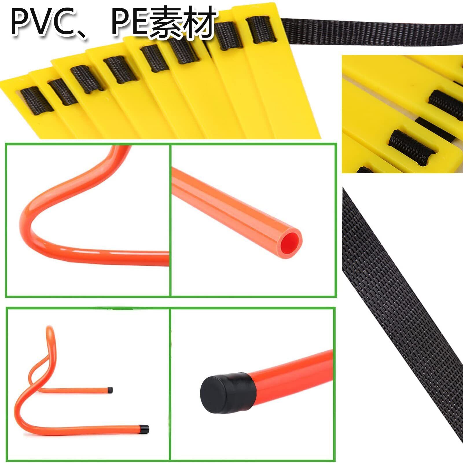 【製品サイズ】 ハードル長い:43cm; 広い:22cm;高い:15cm; 材質:PVC素材、オレンジ色; はしご:6m12ノット、長さ:約50cm、厚さ0.2cm、幅:3.7cm、色: 黄、環境保護と安全、強くて丈夫。