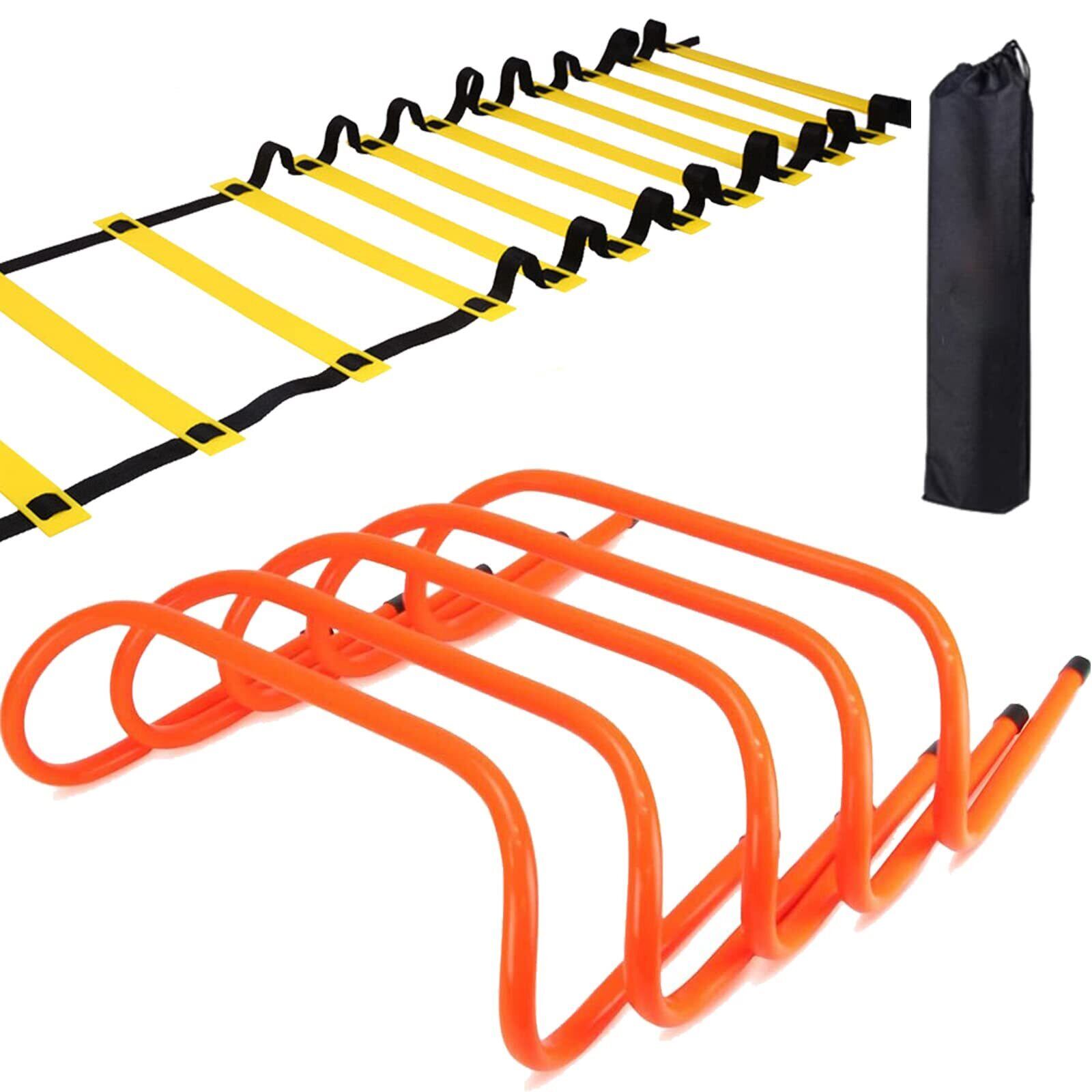 トレーニング ミニハードル 5個 ラダー トレーニングラダー6m セット ハードル トレーニング スピード・敏捷性強化、サッカー、トレーニングに適しています練習用品 収納袋付