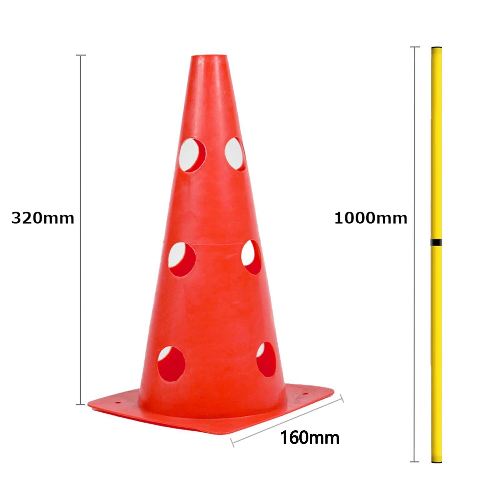 (このセットには、三角コーンの穴が三つの高さがあり、2本の三角コーンと1本の竿が1セットになります。合計は5本セットです。 )