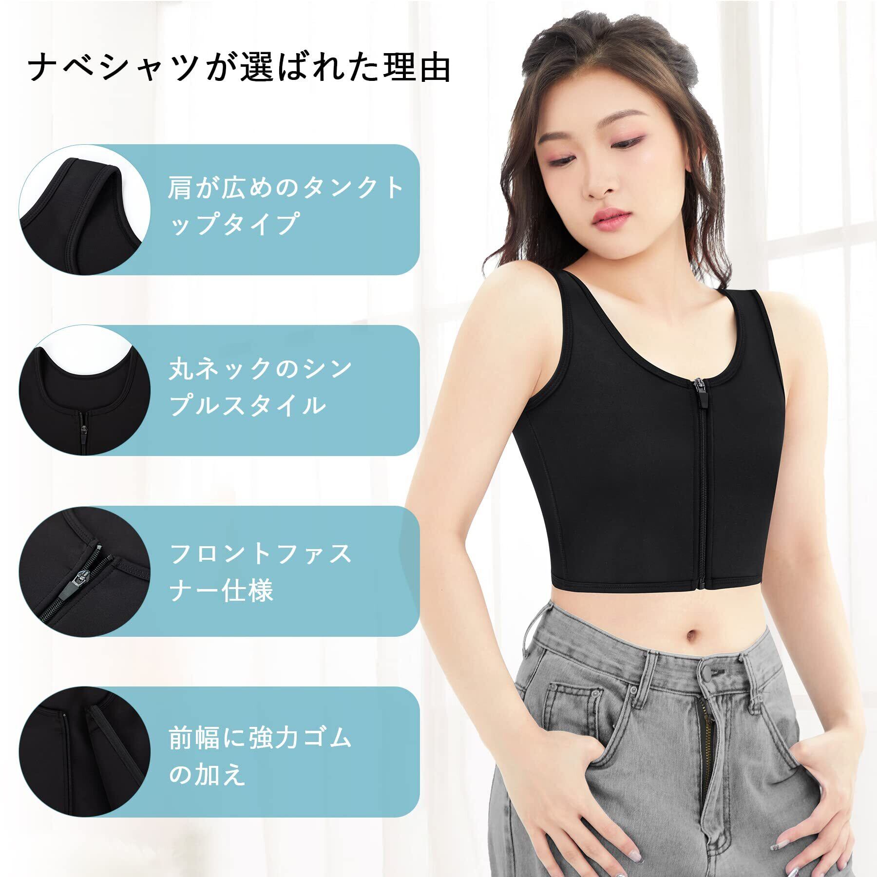 [CtriLady] ナベシャツ スポーツブラ 揺れない コルセット チューブトップ ノンワイヤーブラ タンクトップ レディース 胸を小さく見せるブラ 胸つぶし 補正下着 加圧シャツ チェストベルト さらしブラ 和装ブラジャー