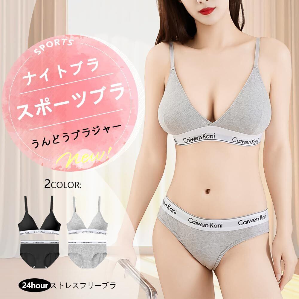 [AIMUJINY] スポーツブラ レディース 揺れない 綿 ノンワイヤーブラ シームレスブラ ナイト 脇高設計 通気性 着用可能昼も夜も 締付け感なし