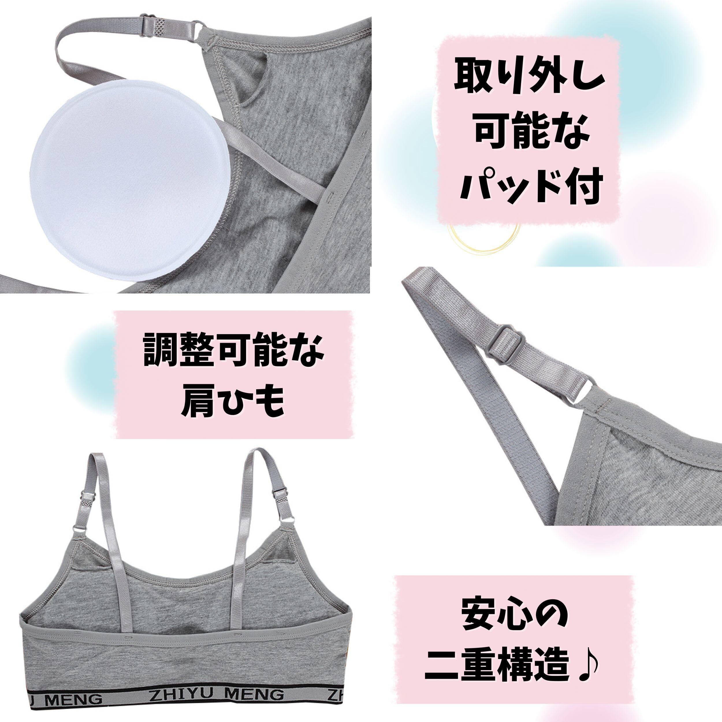 [Mwwct] スポーツブラ&ショーツ 上下3セット ジュニア|小学生・中学生向け 綿混ノンワイヤー ハーフトップ|通学・部活用 3色