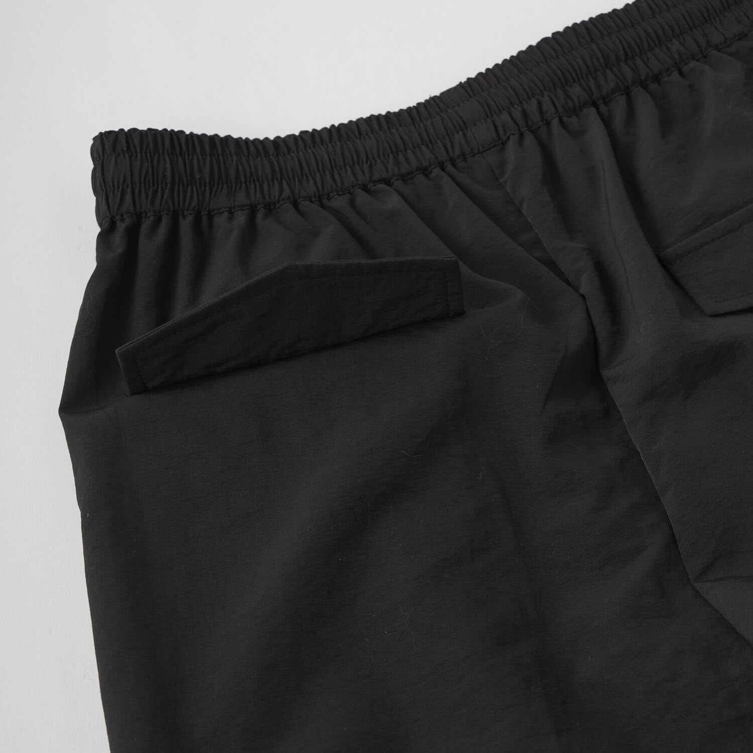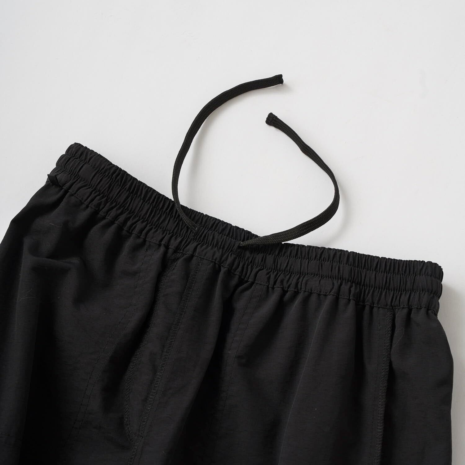 柔らかな風合いのナイロン素材を使用したカーゴパンツ。耐久性がありお手入れしやすく、軽やかな着心地です。ワイドなシルエットと大きめにデザインしたポケットがポイントです。