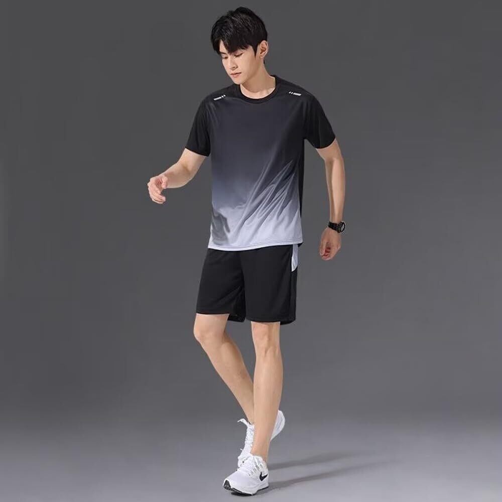 [Ghankga] スポーツウェア メンズ 2/3/4点上下セット フィットネスウェア 半袖 ランニングウェア コンプレッションウェア ショートパンツ スポーツタイツ トレーニングウェア 吸汗速乾 通気 夏服